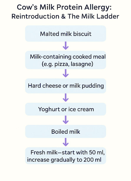 Most children outgrow CMPA by age 3—use the milk ladder to reintroduce safely.